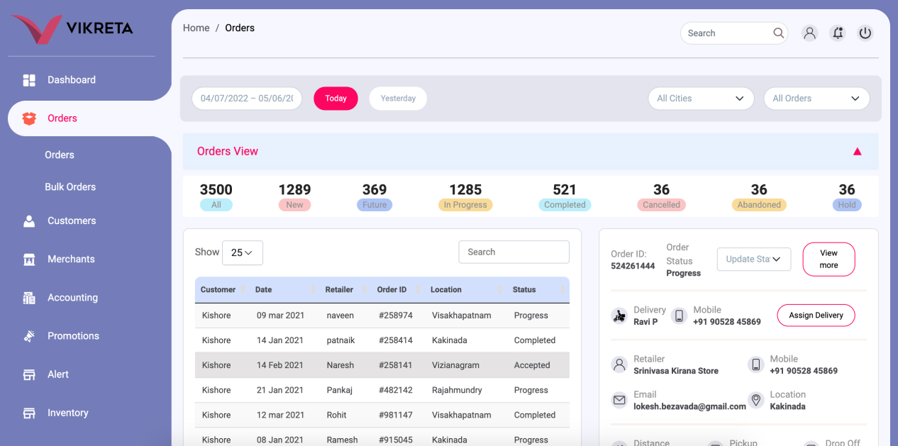 A Digital retail as a Platform service. Vikreta is one of its kind with no other competition where it brings all facets of a retail service to the fore. It seamlessly integrates in-store management and digital store management into one centralized platform that also integrates seamlessly to upstream systems like resellers and aggregators., while also integrated with suppliers and product market places.